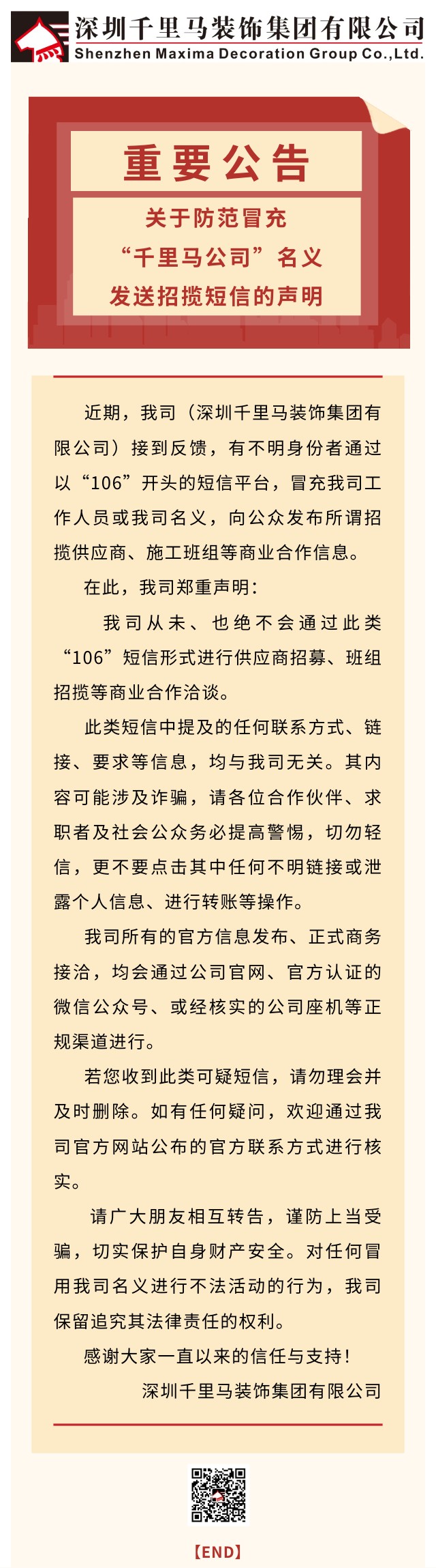 關(guān)于防范冒充”千里馬公司“名義發(fā)送招攬短信的聲明
